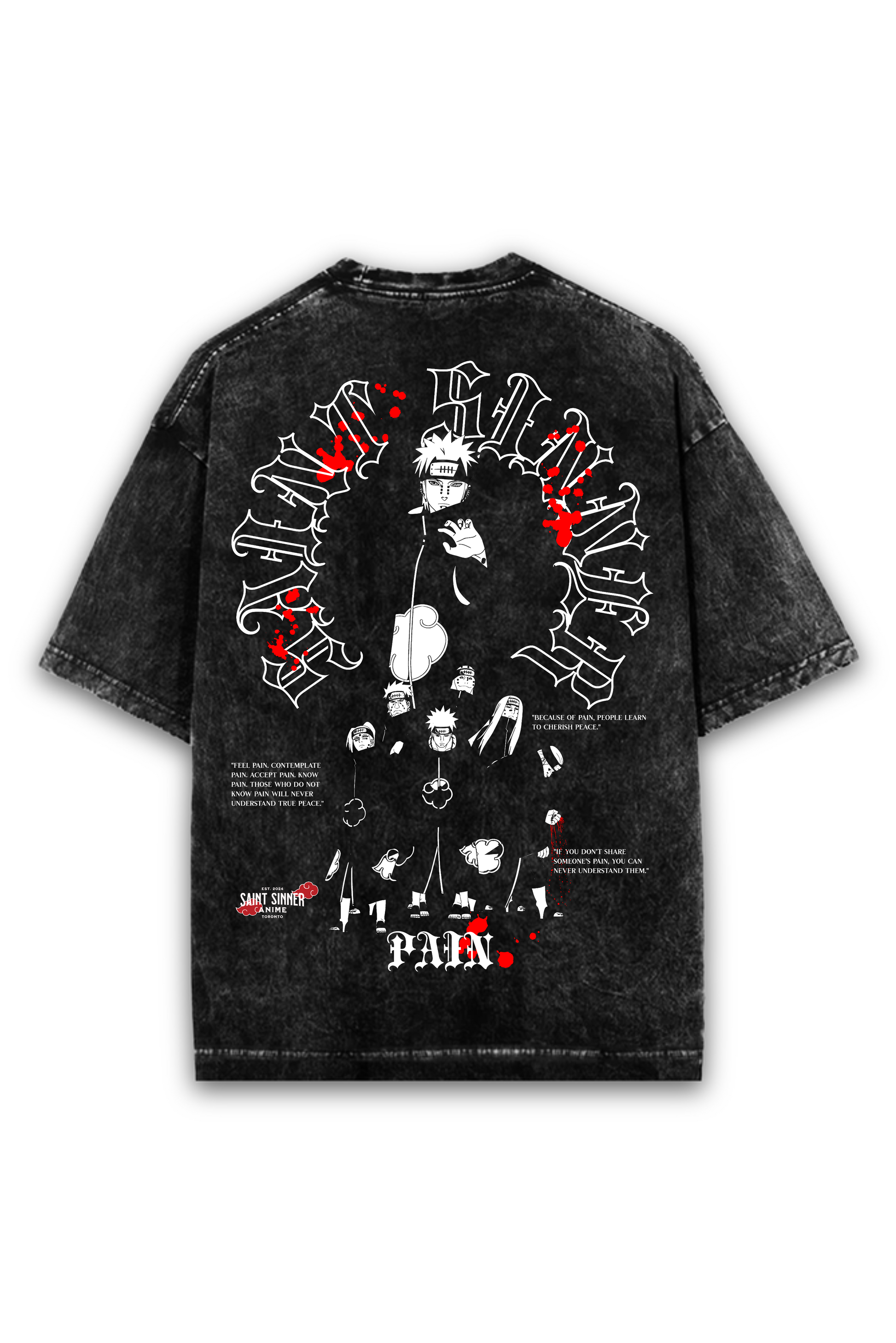 - Back print going HARD: Pain and his six paths in stark black and white
