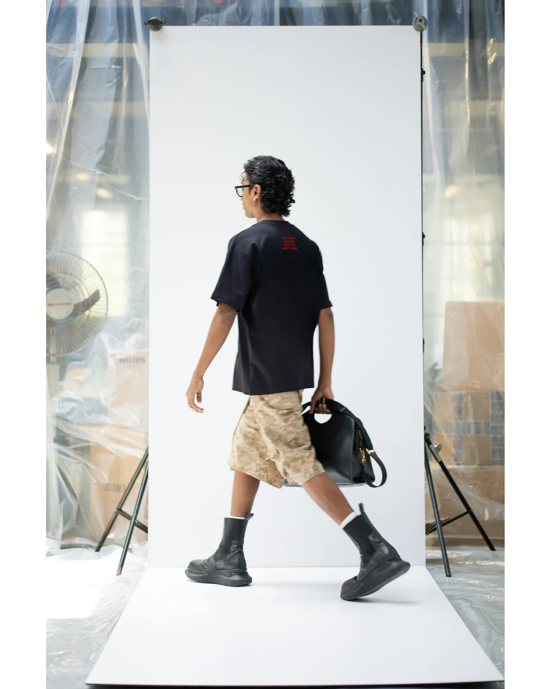 An oversized T-shirt crafted from 240 GSM 100% cotton, bio-washed for an ultra-soft hand-feel and lasting color. The heavyweight yet breathable fabric drapes perfectly, while the extended length and dropped shoulders deliver a relaxed, street-ready fit.